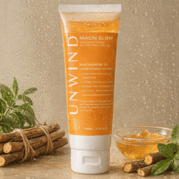 Unwind Niacin Glow Oil-Free Moisture Gel is a fast-absorbing, breathable moisturiser specially formulated for oily, combination, and acne-prone skin. Its refreshing gel texture hydrates the skin without clogging pores or leaving any greasy residue.